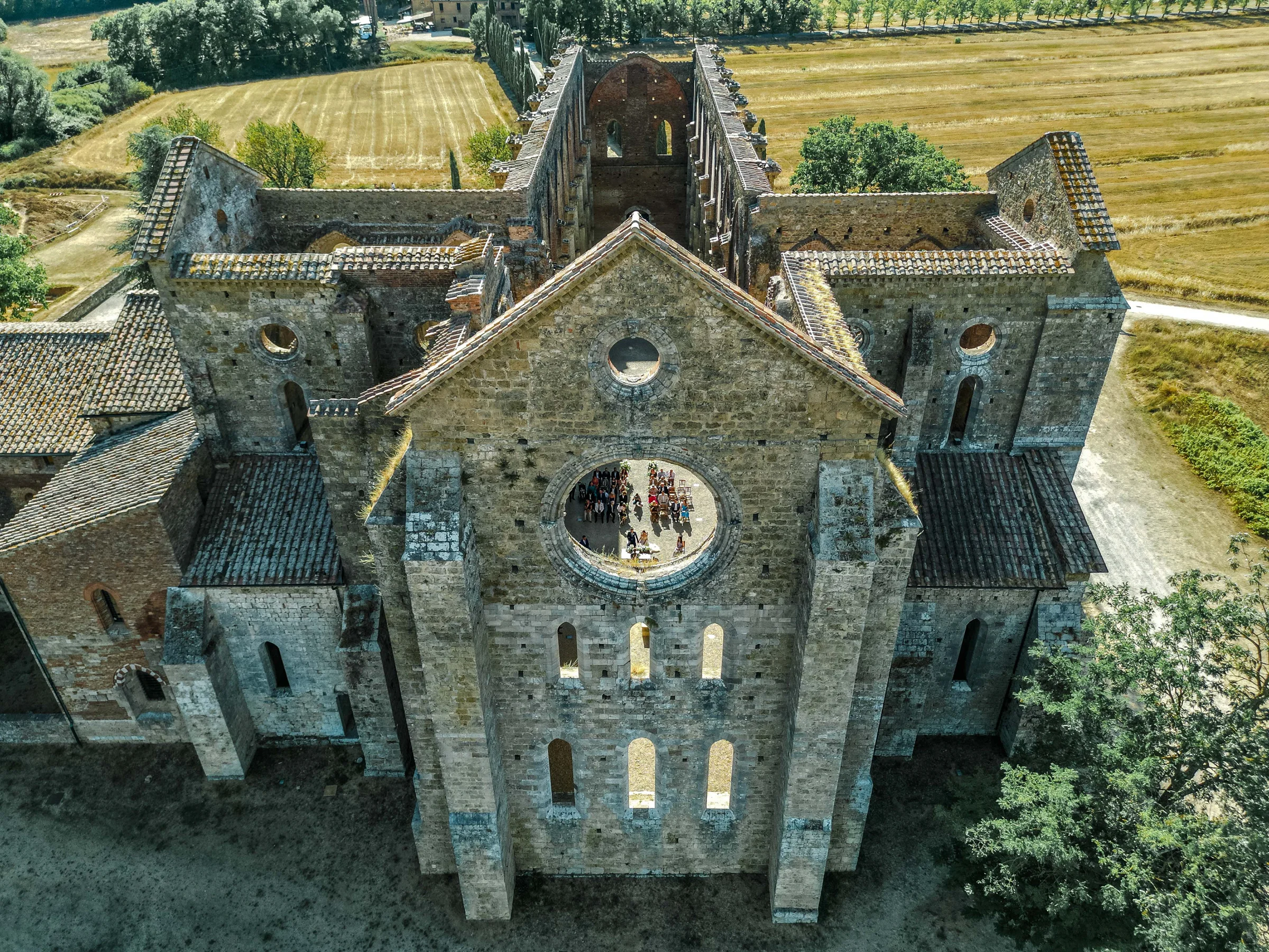 Quel giorno a San Galgano, l’aria era intrisa di un calore che andava oltre la temperatura: un calore emotivo, vibrante di promesse e sogni condivisi. La cerimonia, avvolta nella maestosa semplicità dell’abbazia, ha visto Stefano e Mariana protagonisti di uno scambio di voti tanto autentico quanto l’ambiente che li circondava. E come se ogni pietra, ogni raggio di sole filtrato attraverso gli archi senza tetto, fosse stato lì per celebrare la loro unione.